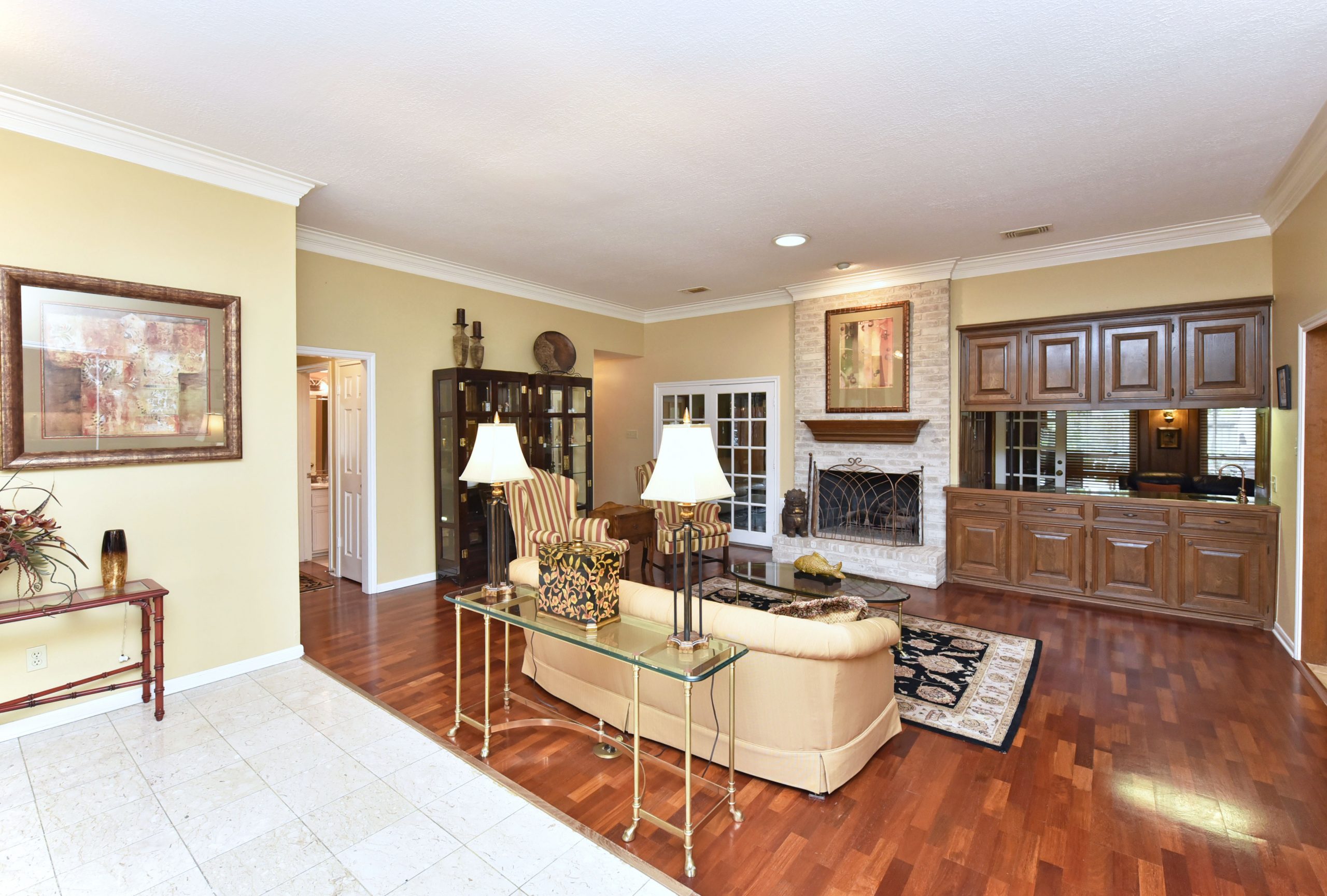 Love to entertain? This is definitely your home! This gem is nestled on a quiet tree lined street surrounded by wonderful neighbors. Impeccably maintained by original owners this custom built one story treasure is ideal for the young at heart with the perfect flow for a large gathering. The 900 sq. ft back patio with pool, hot tub and extended patio cover complete the perfect function. Loaded with top of the line finishes including Brazilian Cherry wood flooring, upgraded appliances, granite counters throughout, Grohe plumbing fixtures, Sears premium double pane windows and Owens Corning Duration Premium roof shingles which are wind resistant to 130 mph. The master suite is located at the back of the home providing lots of privacy and has been updated with granite counters plus frameless walk in shower featuring two zone shower heads and overhead rain shower. Beautiful custom woodwork adds an elegant finish to this home.