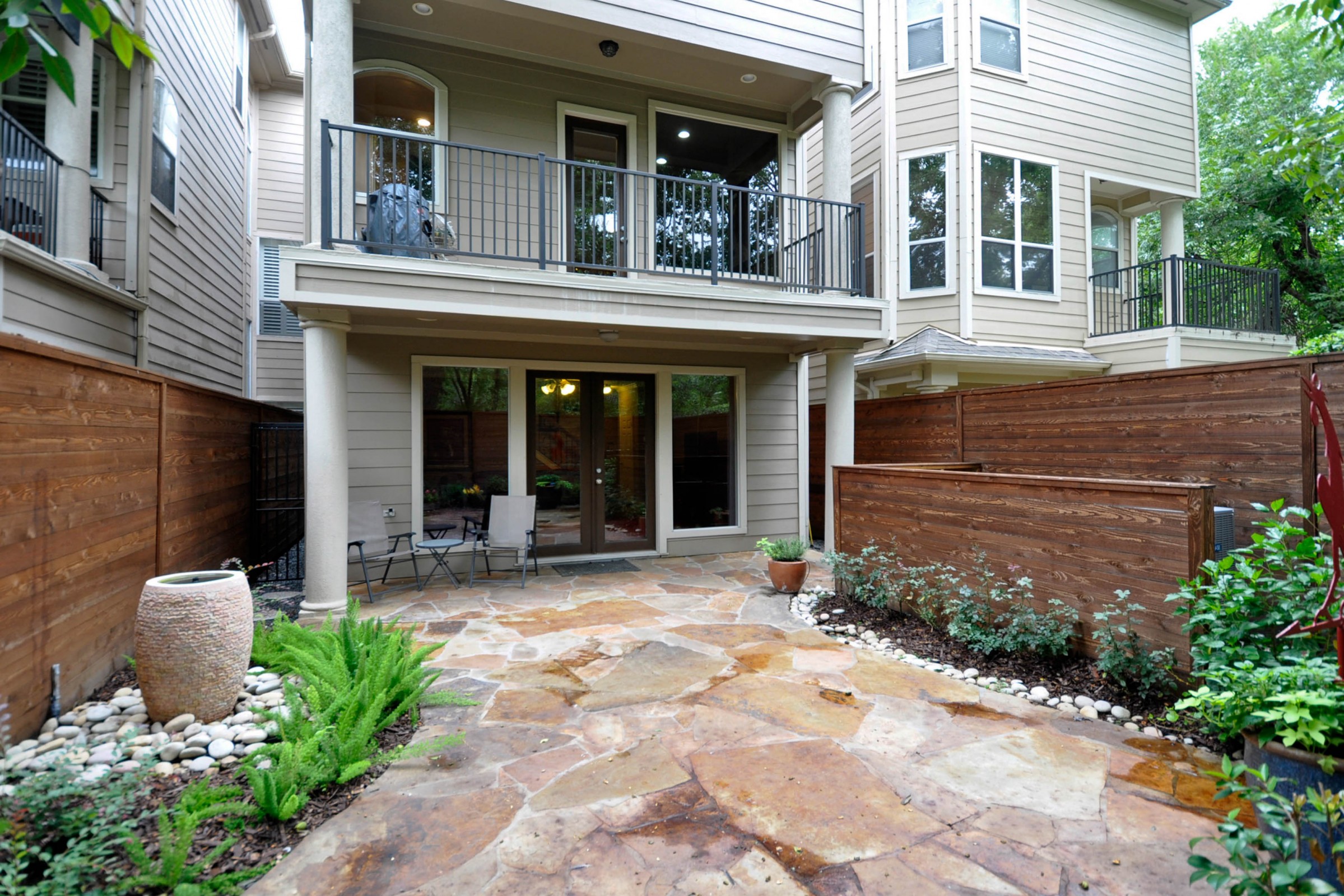 What a spectacular location within walking distance to River Oaks Shopping Center! This classic townhome is loaded with custom features including gorgeous solid oak flooring, plantation shutters, high ceilings, rounded corners and granite countertops. Back balcony off kitchen overlooks a beautiful treed oasis with pecans, oaks and elm for a wonderful tranquil setting. Private back patio with flagstone decking, water fountain and full cedar enclosure. This home has great storage and is elevator capable. Click here for more information.