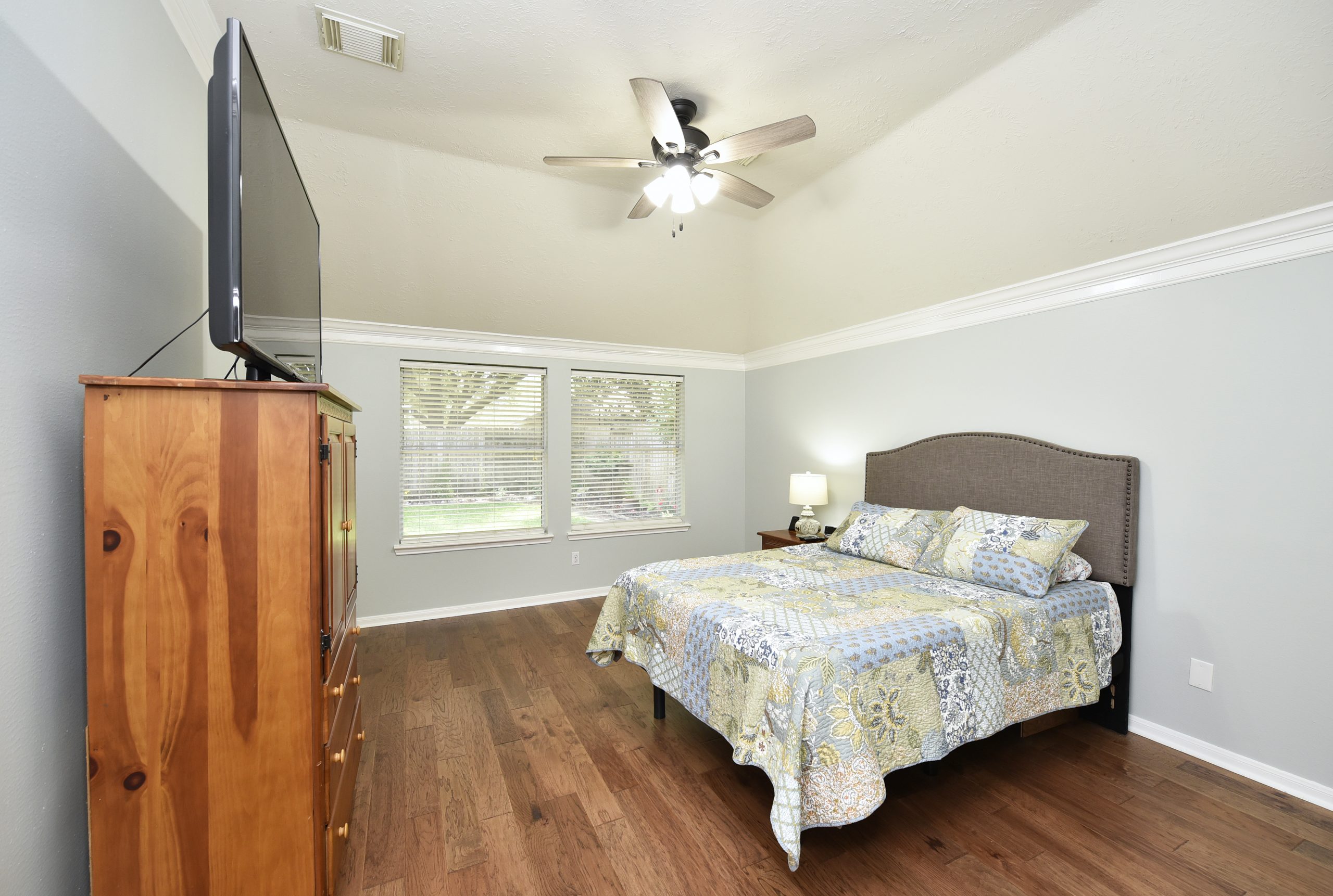 This fabulous all brick one story gem is immaculate from start to finish. Gorgeous wood floors and tile (no carpet) give this an elegant look and feel. Granite counters accent the open kitchen complete with a fabulous skylight, stainless steel appliances, raised breakfast bar and generously sized pantry. A split floor plan provides privacy for the master which is at the back of the home and features wood flooring, large walk in closet, separate frameless shower & double vanity with granite counters. A nice size study & 2 secondary bedrooms are off the front entry and also access a nicely updated bath with granite counters, tile flooring and tile surround shower. High ceilings, lots of crown molding, recent paint, 16 seer a/c system installed in 2020, replaced roof in 2016 and exterior solar screens are just a few of the updates. Gorgeous oaks line this property and provide fantastic shade on those hot Houston days.
